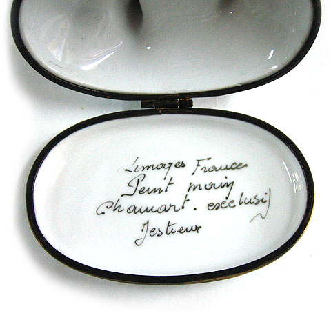 フランスのリモージュ地方は、陶器、陶芸で名高い。この地方で作られる小さなトリンケット・ボックスは、リモージュ・ボックスの名で、世界中に多くのコレクターを持つ。一つ一つ手彩色され、クラスプにも凝ったリモージュ・ボックスのモチーフは様々で、猫をあしらったものもたくさんある。一つ2、3万円と高価だが、愛猫家の中には、猫のリモージュ・ボックスをコレクションしている方もおられることだろう。このところ、『長ぐつをはいたねこ』をテーマにした本やアート&グッズを蒐集しているのだが、リモージュ・ボックスの中にも見つけ出したときは胸が踊った。何とか2つを入手したが、既にリタイアしたボックスの中には、このモチーフのものがまだあるに違いない。根気よく探し続けていきたい。
