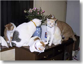 ニセド:今日はバラの花だ! ぬー:どうお?美味しい? ニセド:まあまあってとこかな。痛て!バラって爪があるのか?ひっかかれたぞ。 トン:僕もひっかかれた。 宮沢:葉っぱはシャキシャキしてて歯ごたえが良かったよ。 らー:ママに叱られるよ。ぼく知らないからね。 |