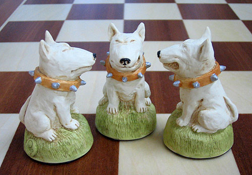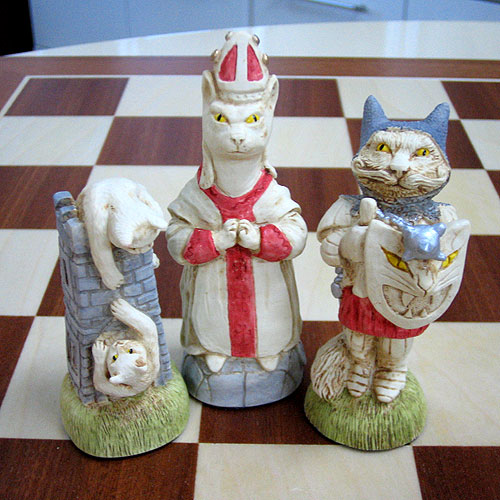 一番のお気に入りは、猫のポーン。チェシャ猫がモデルになっている。犬のビショプもなかなかいい。