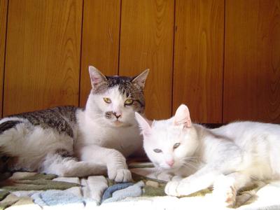 2004/2/18 はじめまして、ぼくyou。右の白い猫がmeちゃん。二人合わせてyou & me。 よろしくお願いします。