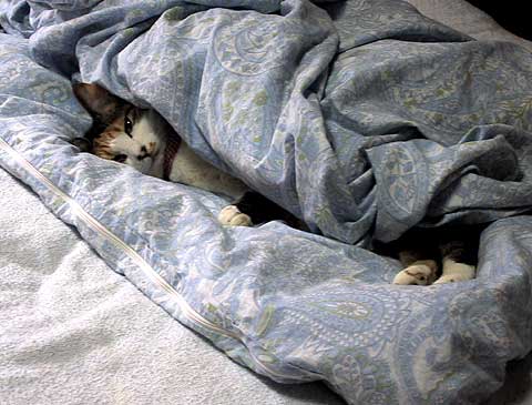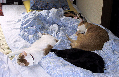 7月も半分過ぎたけど、朝や夜はすごく涼しいでしょ。こうしてお布団にくるまって朝寝坊するの、気持ちいい〜んだから。