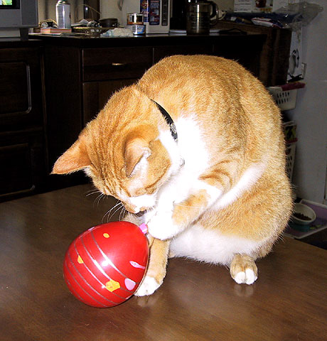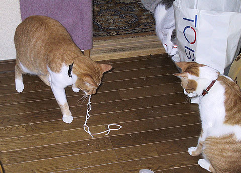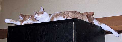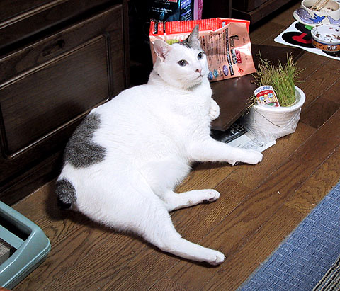 夜はエリちゃんの食べ残しを、昼間はトンちゃんが開けた引き出しから失敬して食べてたら、ぼく、また大きくなっちゃったみたい。