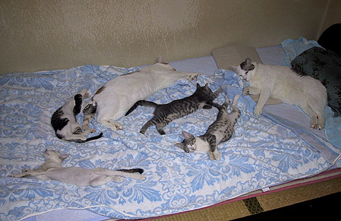 らーちゃん、ぬーちゃん、新入り子猫4匹