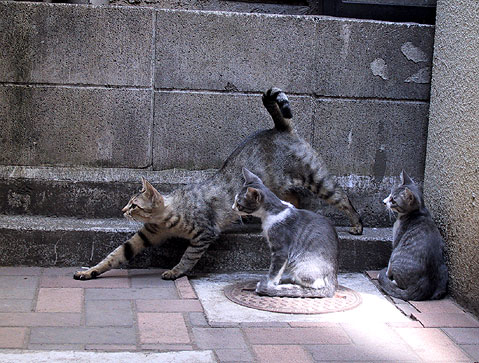 事務所の外の子猫3匹