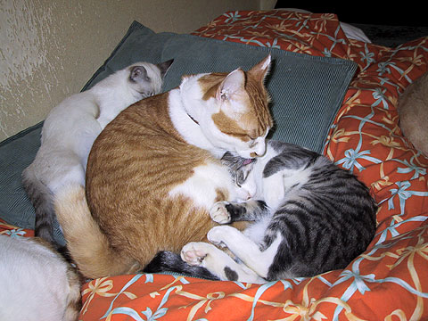うそ〜!!甘えん坊トンちゃんは、いつだっておチビさんたちに舐めてもらってたじゃない。雨が降るよ〜。止めて!ようやく晴たんだから。