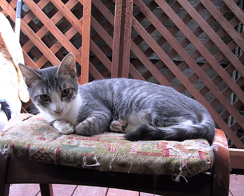 ぼく、モナコちゃんにそっくりでしょ。5匹兄妹の中で、ぼくだけがママに捕まらなかったんだ。今は、ママと仲良しだけど。