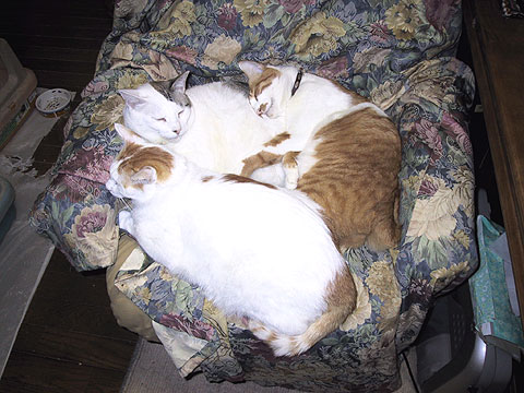 ぬーちゃん、たまには、新入り子猫じゃなくて、ぼくたちをだっこしてよ〜