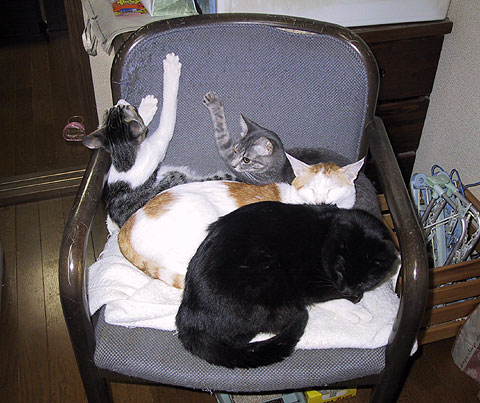 この椅子ね、もう40年以上もneco家にあるんだって。もうボロボロだから、おばあちゃんは捨てるって言うの。でもあたし、この椅子だ〜い好き。捨てないで!!
