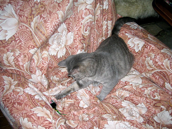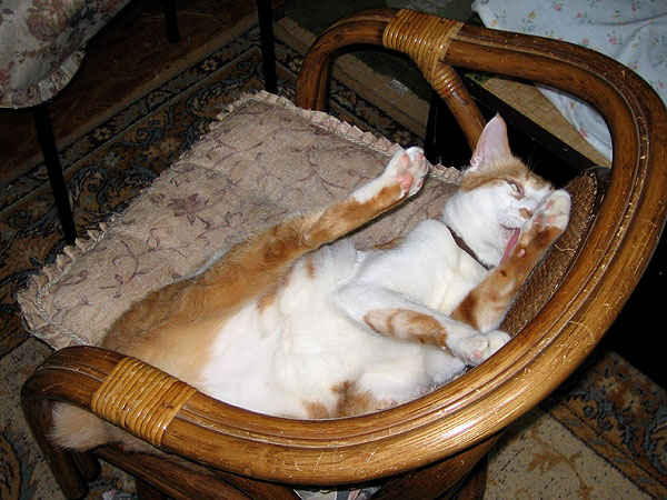 キャッホー、この椅子の住人ゴンちゃんが、最近押入れの中に引っ越したからさ、ここ、ぼくのものになったんだ!