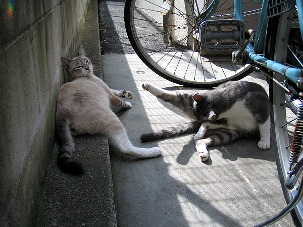 梅雨が明けたんだってね。どおりで、暑い〜!寒い冬も嫌だけど、暑いのも嫌〜っ!でも、まだコンクリートの上で、ゴロゴロできるうちは、いいとしなくちゃ。もうすぐ、コンクリートの上なんて、熱くて歩けなくなっちゃうものね。