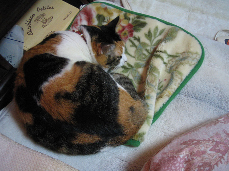 neco:エリちゃん、その毛布、エリちゃんには小さすぎるみたいね。