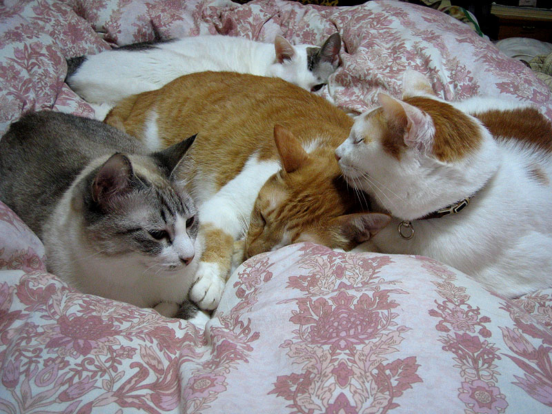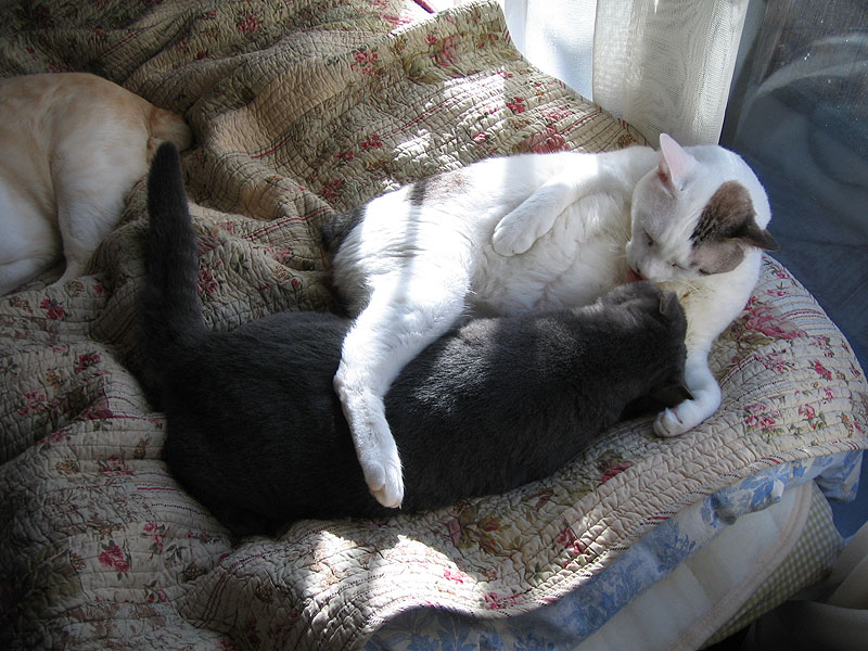 みなさん、この光景、neco家では日常茶飯事、とお思いでしょうが、実は、とっても珍しのですよ。面倒見の悪いニセドは、いつも一人ぼっちで、慕って寄り添ってくれる猫ちゃんはいないのです。でも、ほら、モナちゃんが傍にいるでしょ。ニセドも満足気に眠っているし。もっとも、モナコは少々変わり者なのですけど。