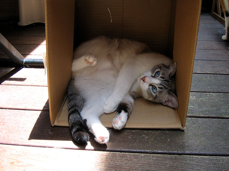 モナコ:ママも箱に入ってごらんよ。ウキウキ楽しくなるよ。