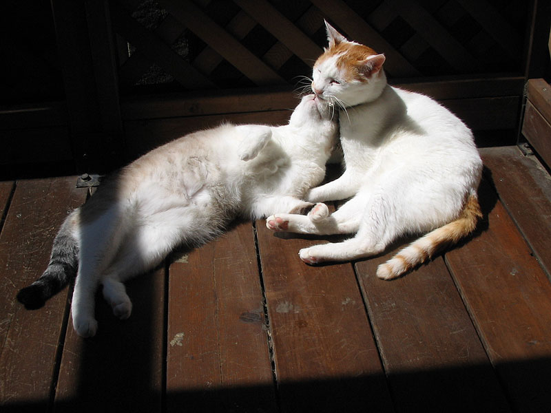 neco:あら、モナちゃん、らーちゃんに舐めてもらってるの?いいのねえ。