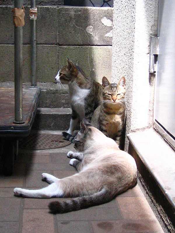 冷たい雨の狭間の晴れ……外猫さんは、気持ち良さそうに日光浴を楽しむ。このコンクリートの温もりが心地良い季節は、本当に短い。肉球も焼けるほどの熱さになる日は遠くない。