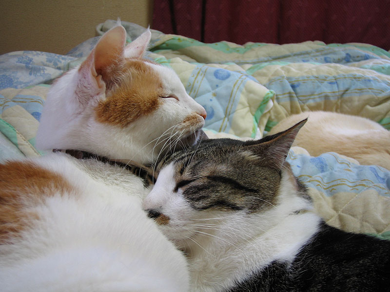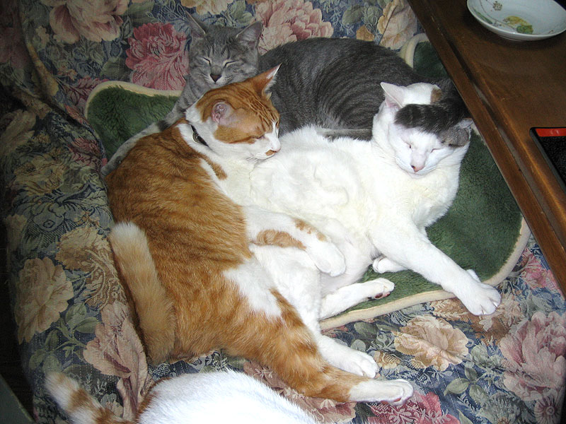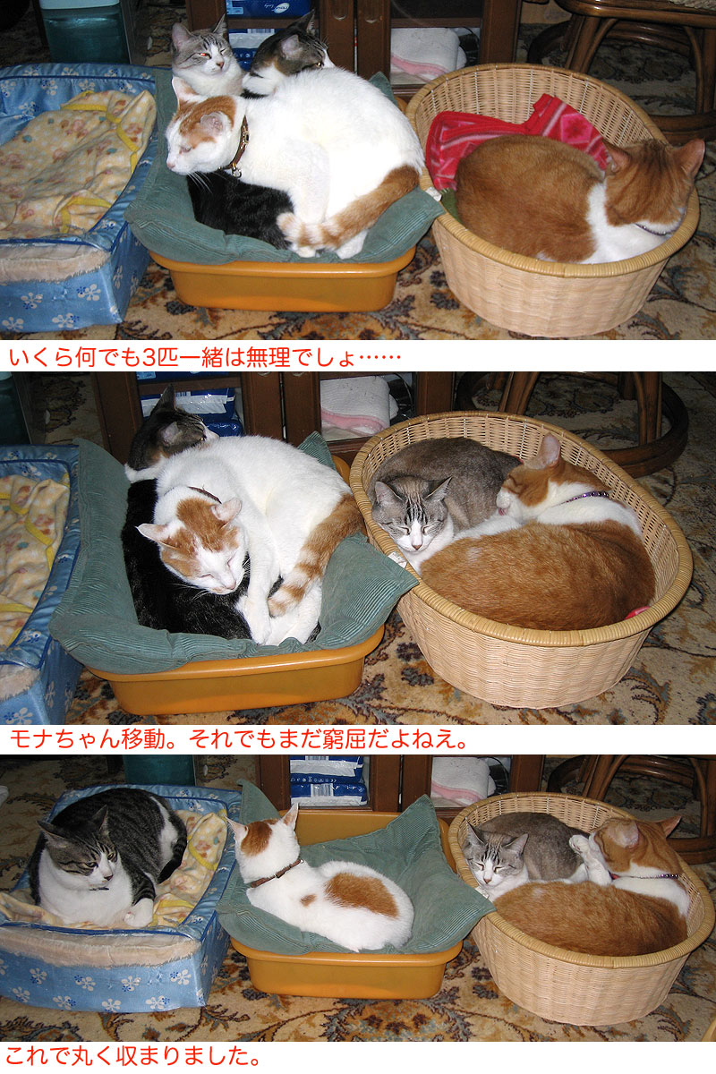 neco:また、3匹でくっついてるの?あれ、変!どうしたの、ぬーちゃん?