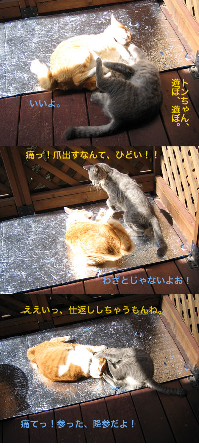 遊びとケンカは紙一重。相性抜群の二匹です。