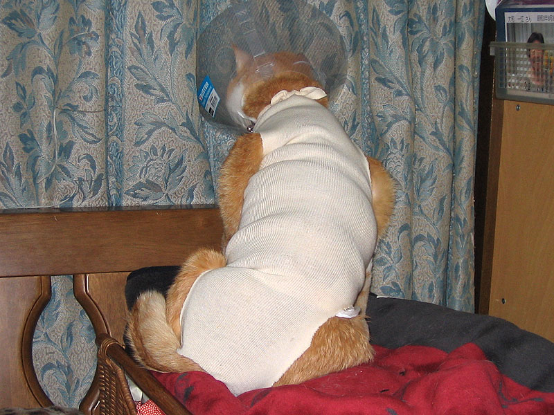 トン:早くこのプラスチックの襟巻き取れないかなあ。