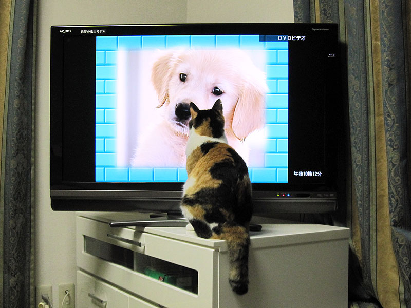 neco:エリちゃん、そんなにテレビに近寄ったら見えないでしょ。