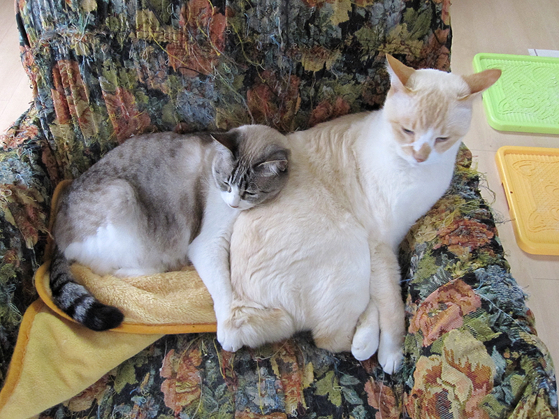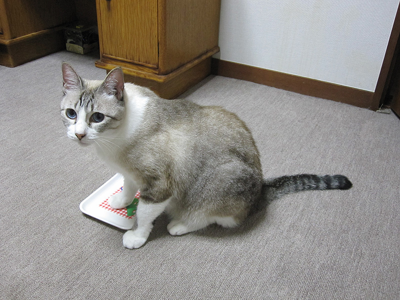 ぬー:今日はママがセサミちゃんのダイエットについて書いたみたいだけど、ぼくだって2キロ以上スリムになったんだよ。ママも先生もどこか悪いところがあるんじゃないかって心配してたけど、検査したらどっこも悪くなかったんだ。何でこんなにスリムになったのか、良くわからないけど、多分猫缶が好きになったためだと思う。前はカリカリばっかり食べてたからね。我慢しないで痩せられて、ラッキーだなあ。
