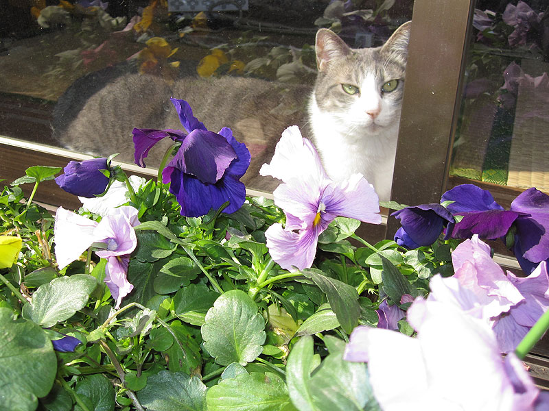neco:コエリちゃん、お花を見ながら日向ぼっこ?
