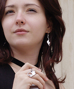 キキーとテリーの2匹の猫と共に暮す、ドイツのアーティストが生み出すジュエリー・コレクションがネロ&ビアンカです。シンプルなラインの中に気品とウィットが漂うデザイン、確かな素材、心地よい重さ……高級感あふれるコレクションです。 この猫のシルエットは SEXY というタイトルが付けられ、ペンダントやピアスなどに展開されています。猫のしなやかさが表現されたデザインで、年代を問わずにお付けいただけます。耳に付ける金具もしっかりしています。 ペンダントとセットで、あるいは、同じシルエットを型抜きしたペンダントとペアでいかがですか。 |
