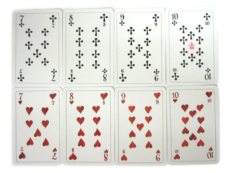 このデックは、ナポレオンに似た、Skat と呼ばれるゲームをするためのもので、各スート、7以上しかありません。